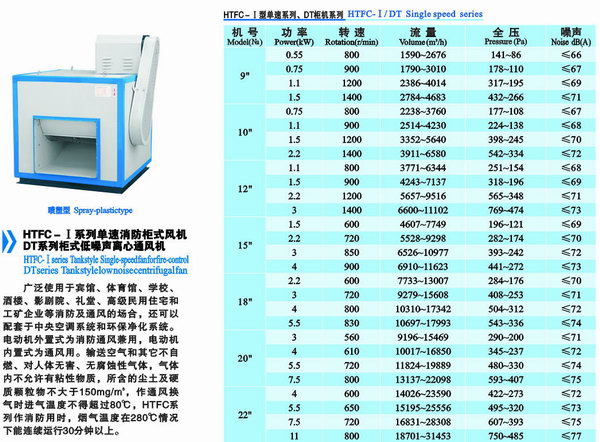 DT柜式離心風機電機分內置型、外置型,廣泛使用于賓館、體育館、學校、酒樓、影劇院、禮堂、高級民用住宅和工礦企業等消防及通風的場合,還可以配套于中央空調系統和環保凈化系統。電動機外置式為消防通風兼用,電動機內置式為通風用。輸送空氣和其它不自燃、對人體無害、無腐蝕性氣體,氣體內不允許有粘性物質,所含的塵土及硬質顆粒物不大于150mg/m3,作通風換氣時進氣溫度不得超過80℃